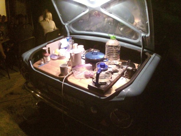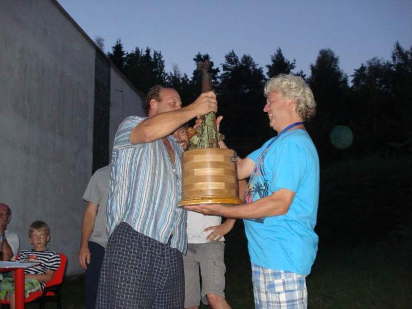 V podvečer jsme konečně připevnili štítky na klubovou trofej. Ve 20h proběhlo vyhlášení soutěží - Cortinářem srazu se stal Míra Silovský a Kára srazu putovala pro nováčka pana Körbela, který se na srazu do klubu přihlásil. Přijel nádhernou mk1 standardkou v původním stavu.