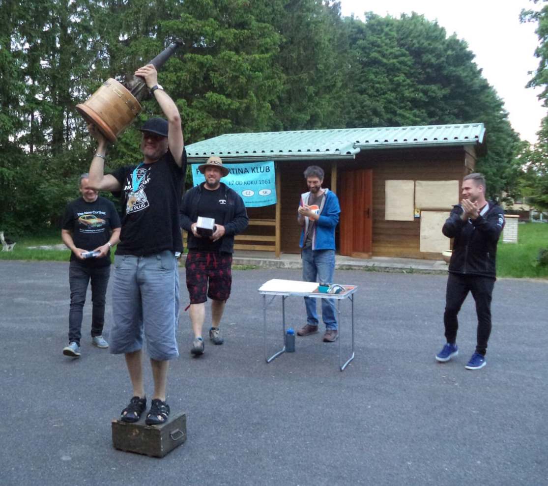 Ve 20h proběhlo vyhlášení soutěží - Největším znalcem součástek se ukázal Jirka Meduna. Káru srazu z mého pohledu zaslouženě obdžela Mk2 Martina Špačka. Doufali jsme, že se nestane, co loni, a bude jen jeden Cortinář srazu, který si zapečenou mrkev odveze domů. I stalo se, a už počtvrté stál na bedně (tentokrát doslova) Jirka Meduna.